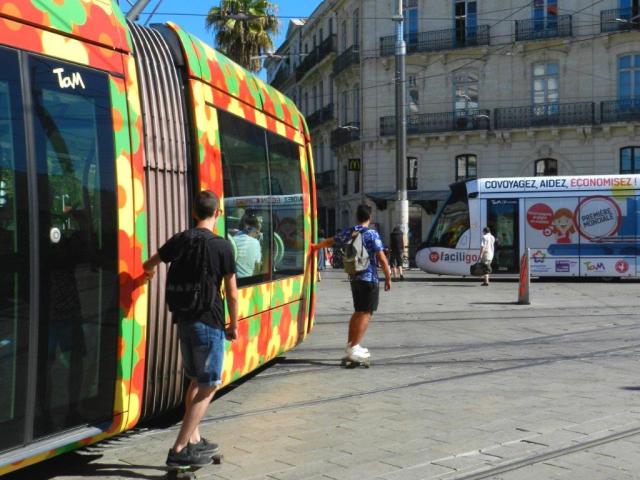 A Montpellier, il y en a qui font leur le slogan de la start-up Faciligo : « Covoyagez (en skateboard c’est encore mieux), Aidez (la rame de tramway s’en charge), Economisez (votre argent et vos forces) ! »