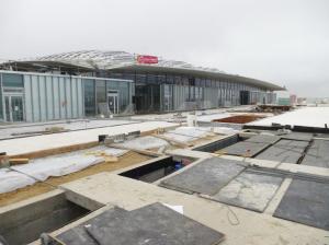 - Parvis supérieur en travaux de la future gare TGV Montpellier Sud de France photographié le dimanche 9 juillet 2017. Copyright : Michel Bozzola