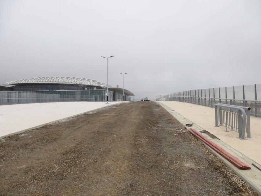 Voie d’accès au parvis supérieur de la future gare TGV Montpellier Sud de France photographiée le dimanche 9 juillet 2017. Copyright : Michel Bozzola