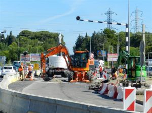 Selon les informations recueillies auprès d’un intervenant sur le chantier, le passage à niveau va être entièrement réaménagé avec la réalisation d’une plateforme béton pour les voies du tramway, les barrières automatiques seraient supprimées et les feux de la circulation routière reconfigurés.