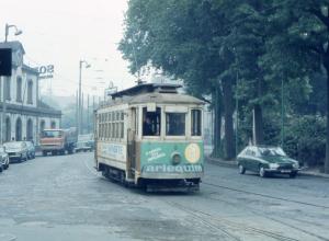 - A Porto, la motrice 268 de type Bogie Fumista (année 1930) est photographiée dans l’enceinte du dépôt STCP de Boavista au mois de juillet 1977. Copyright : Edgar Chaptal