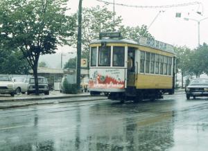 - A Coimbra, photographie sous la pluie de la motrice 6 Brill, qui opère sur la ligne 3, au mois de juillet 1977. Copyright : Edgar Chaptal
