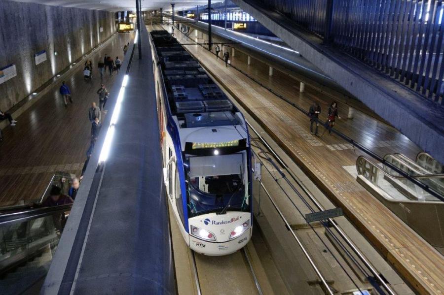 A La Haye, la rame 4061 Regio Citadis Alstom, opérant sur la ligne 2 de tramway, est photographiée à la station souterraine « Grote Markt », le jeudi 11 mai 2017. Copyright : Yvon Brument