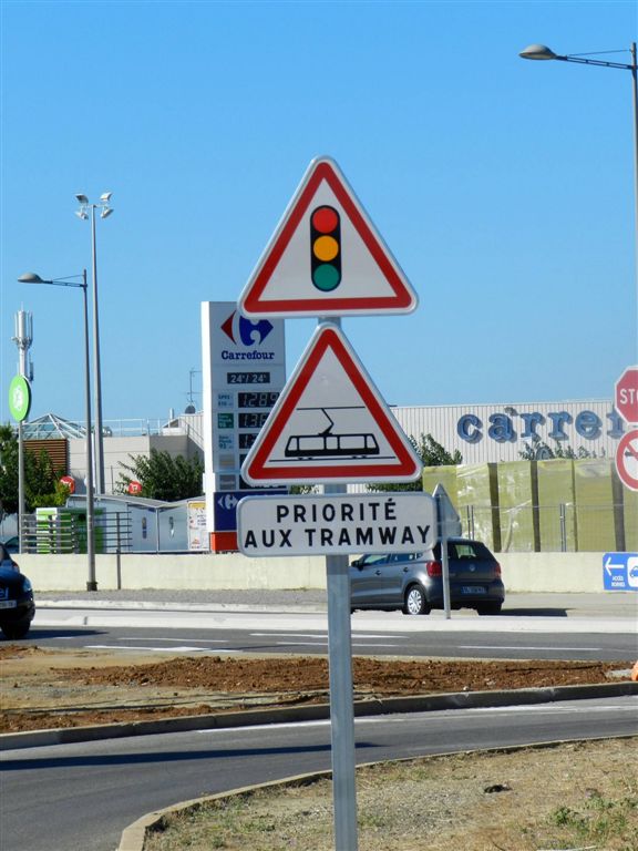 Nouvelle signalisation routière, route de Sète à Saint-Jean-de-Védas, photographiée le samedi 12 août 2017. Copyright : Anje34