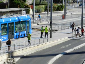 21 août 2017 – Place du 11 Novembre à Montpellier, la nouvelle signalisation tramway est opérationnelle