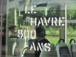 - Le Havre 500 ans appliqué sur une baie vitrée de chaque motrice des 22 rames Citadis 302 Alstom qui opèrent sur les 13 km du réseau de tramways constitué par les lignes A et B. Photo prise le samedi 19 août 2017. Copyright : Edouard Paris