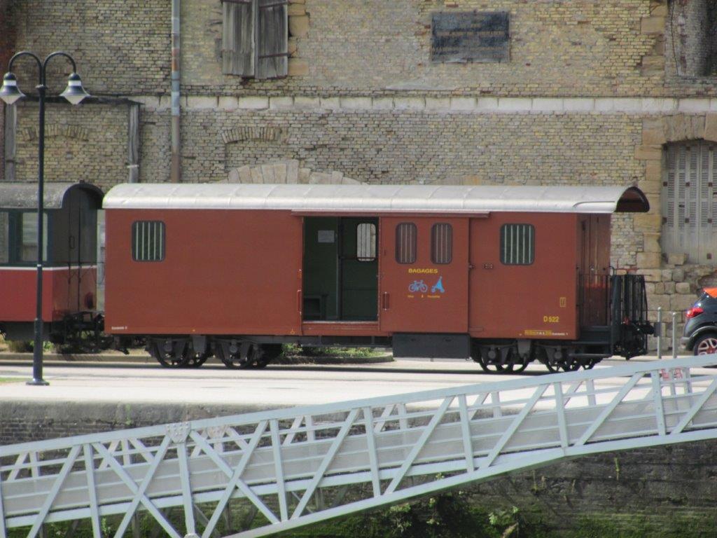 Le fourgon à bagages suisse Df 522, ex-Berner Oberland-Bahn (BOB), est photographié en gare de Saint-Valery-sur-Somme (Port), le mardi 15 août 2017. Copyright : Edouard Paris