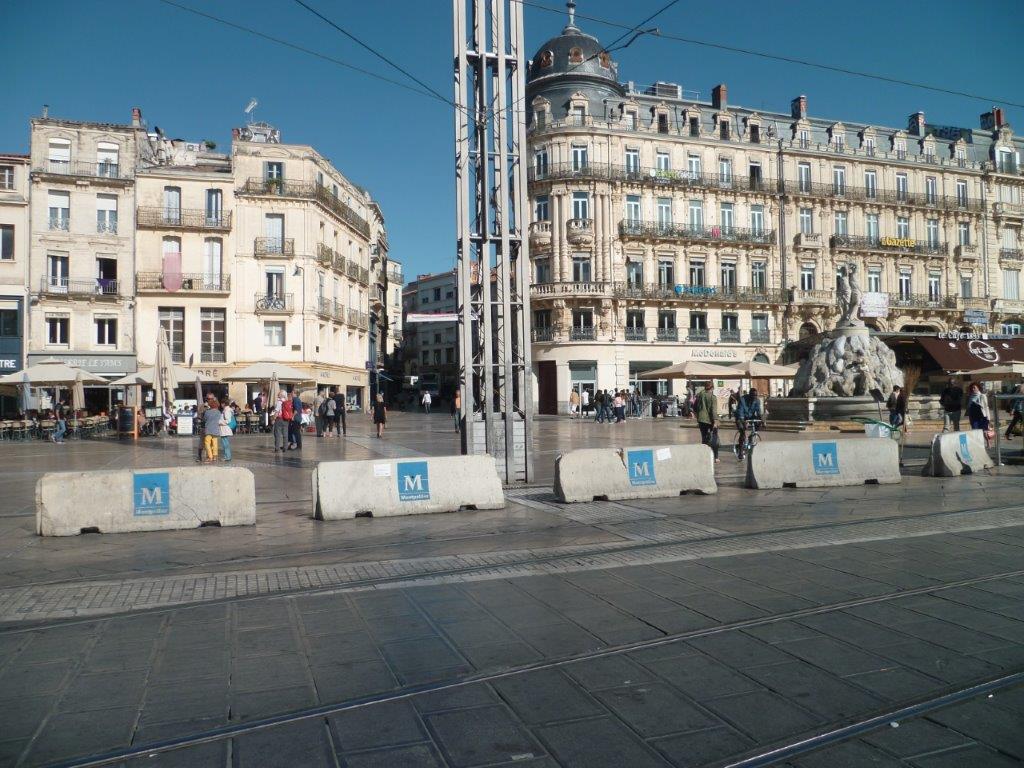 16 septembre 2017 – Place de la Comédie à Montpellier, des blocs de béton qui font tache