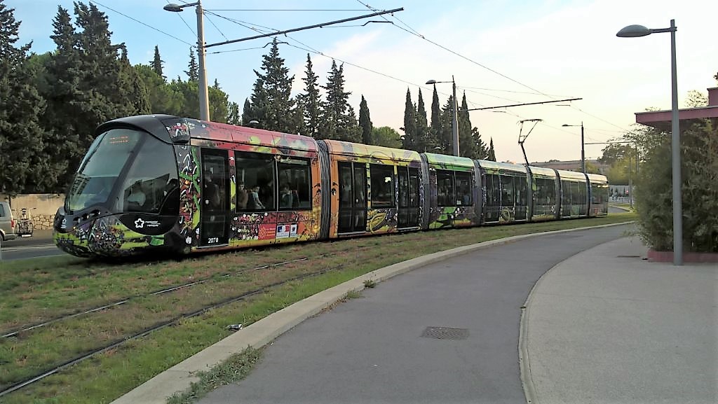 La rame 2070 Citadis 402 Alstom, circulant en direction du terminus « Juvignac » de la ligne 3, est photographiée entre les stations « Tonnelles » et « Pergola », le vendredi 22 septembre 2017. Copyright : Edouard Paris