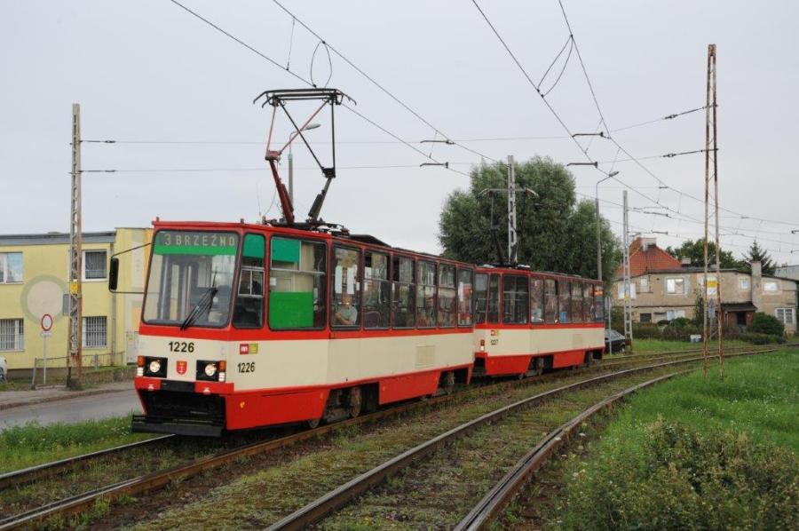 A Gdansk, les motrices 1226 et 1227 Konstal 105Na, construites en 1977 et modernisées en 2002, opèrent sur la ligne 3, le lundi 21 août 2017. Copyright : BDR