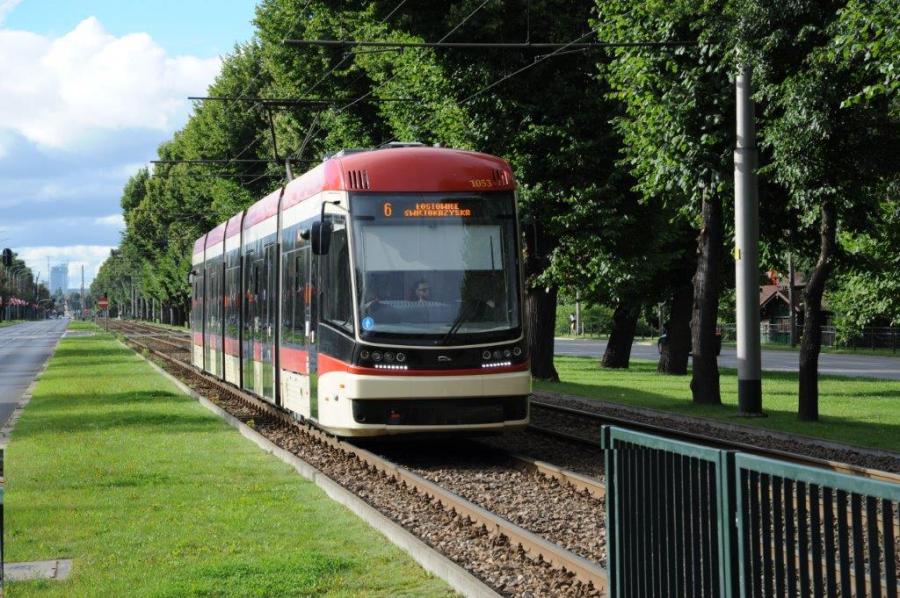 A Gdansk, la rame bidirectionnelle 1053 Jazz 128NG Pesa, opérant sur la ligne 6, est photographiée le lundi 21 août 2017. Copyright : BDR