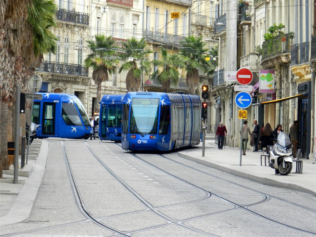 Une rame au secours d’une autre rame, une image que vous ne verrez jamais sur le compte Twitter TaM Montpellier 3M. Photo prise le samedi 30 septembre 2017. Copyright : Anje34