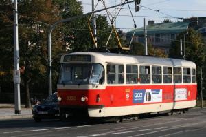 - A Prague, la motrice 8538 T3R.P UDDP (2007) ex 6894 T3 ČKD Tatra (1974) est photographiée le vendredi 29 septembre 2017 au carrefour de Ujezd et Vitezna. Copyright : Christophe Clément