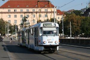 - A Prague, la motrice 8542 T3R.P UDDP (2007) ex 6963 T3 ČKD Tatra (1976) est photographiée le vendredi 29 septembre 2017 sur le pont Palackého. Copyright : Christophe Clément