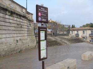 - Totem de l’arrêt « Peyrou – Arc de Triomphe » des lignes 6 et 7, directions « Pas du Loup » et « La Martelle/Les Bouisses », photographié le samedi 21 octobre 2017 à 10h32 alors que cet arrêt n’était pas desservi. Copyright : Edouard Paris