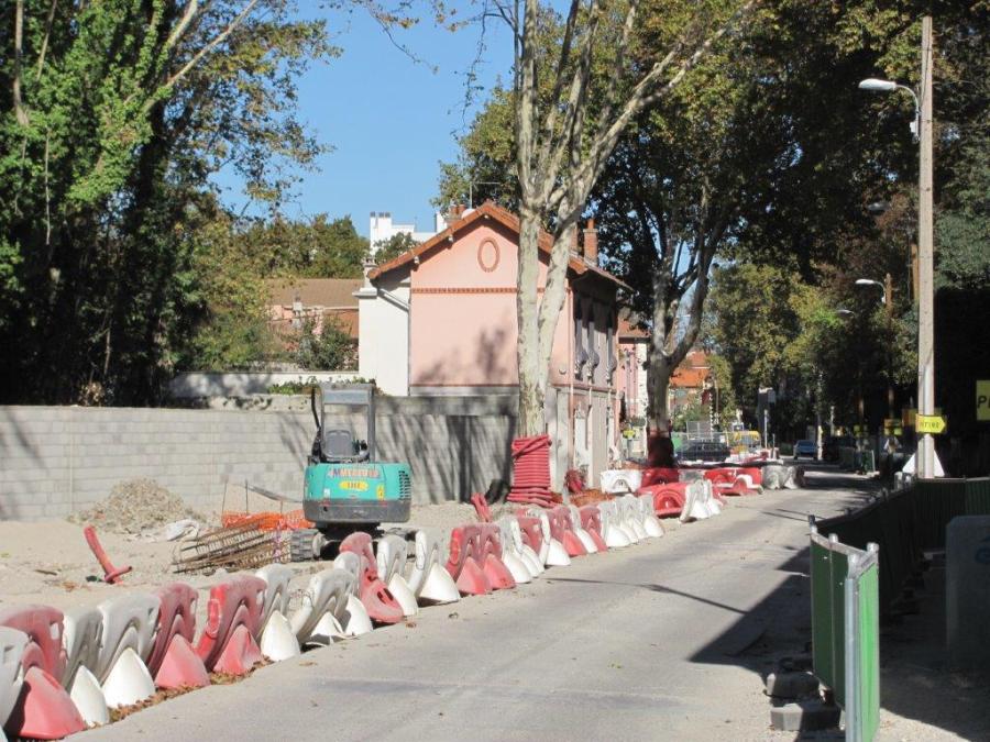 Avancement du chantier de la première ligne de tramway moderne d’Avignon, avenue de Tarascon, à proximité de la rue Marius-Jouveau et du boulevard Jean-Mermoz, le samedi 28 octobre 2017. Copyright : Edouard Paris