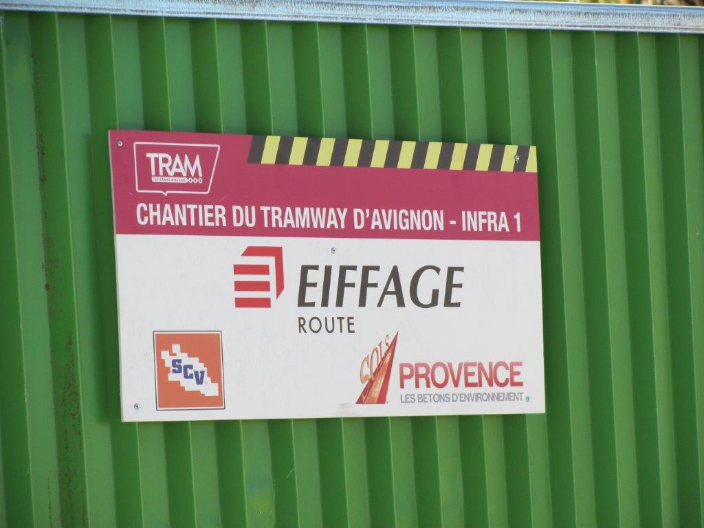 Signalétique du chantier du tramway moderne d’Avignon photographiée sur une palissade boulevard Saint-Roch, le samedi 28 octobre 2017. Copyright : Edouard Paris