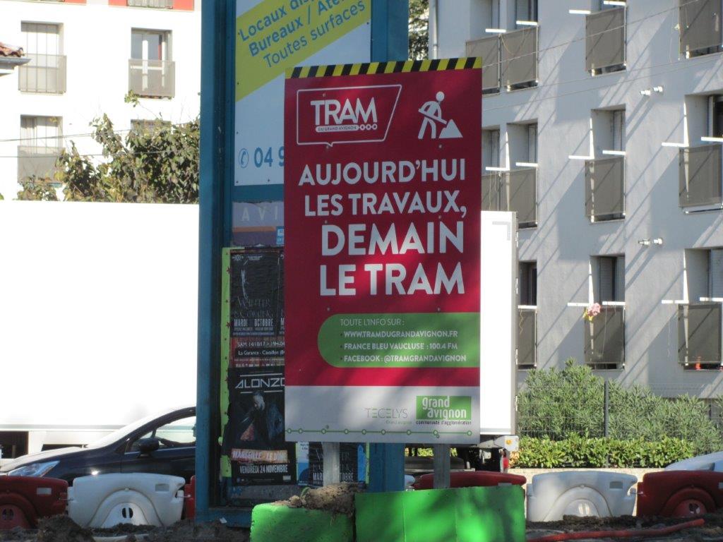Un panneau, qui résume bien la situation, photographié sur la rocade Charles-de-Gaulle à Avignon, à proximité du carrefour de l’avenue de Tarascon, le samedi 28 octobre 2017. Copyright : Edouard Paris
