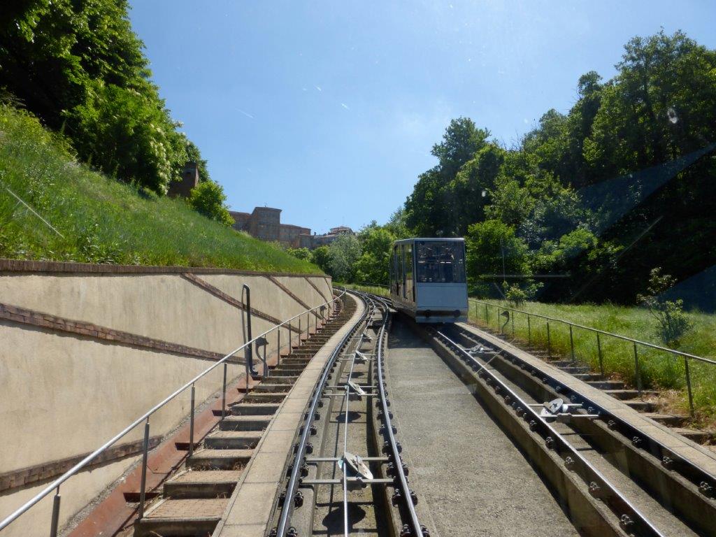 Croisement avec la seconde cabine à mi-parcours de la ligne de funiculaire de Mondovi, le samedi 13 mai 2017. Copyright : PhiliRoy