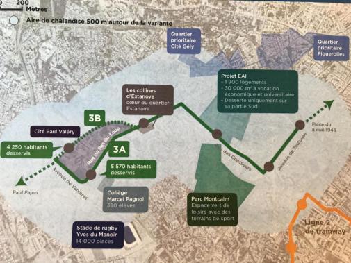 Variante 3A 3B de la ligne 5 rue des Chasseurs avenue de Toulouse à Montpellier. Document Montpellier Méditerranée Métropole publié le lundi 6 novembre 2017