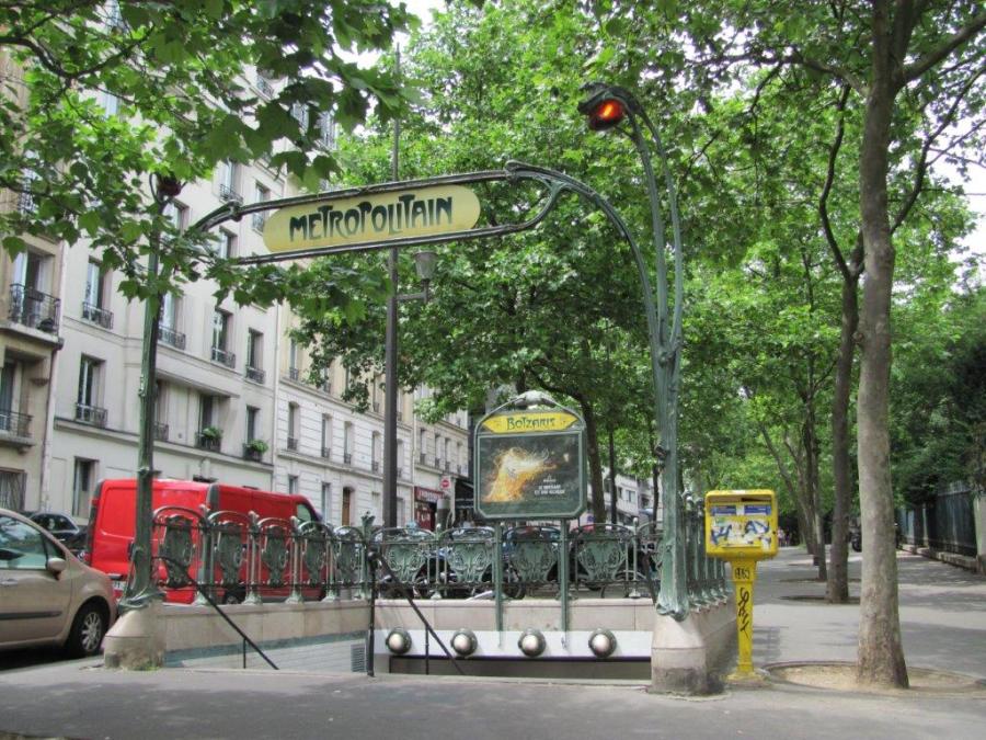 Bouche de métro de la station « Botzaris » de la ligne M7bis, photographiée le dimanche 4 juin 2017. Copyright : Edouard Paris