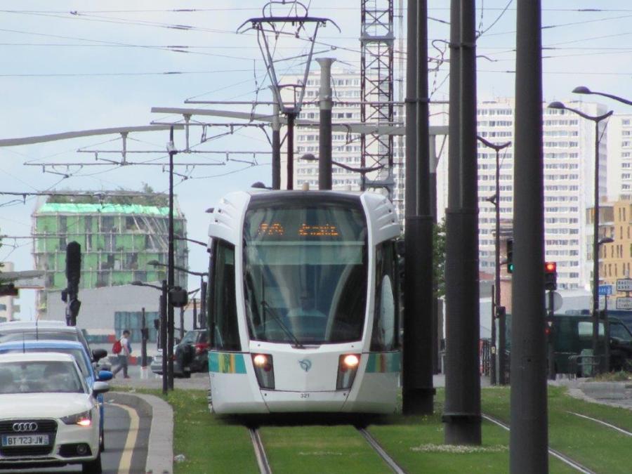 Boulevard Poniatowski, 12ème arrondissement, la rame 321 Citadis 402 Alstom vient de quitter la station « Porte de Charenton » de la ligne T3a, le lundi 5 juin 2017. Copyright : Edouard Paris