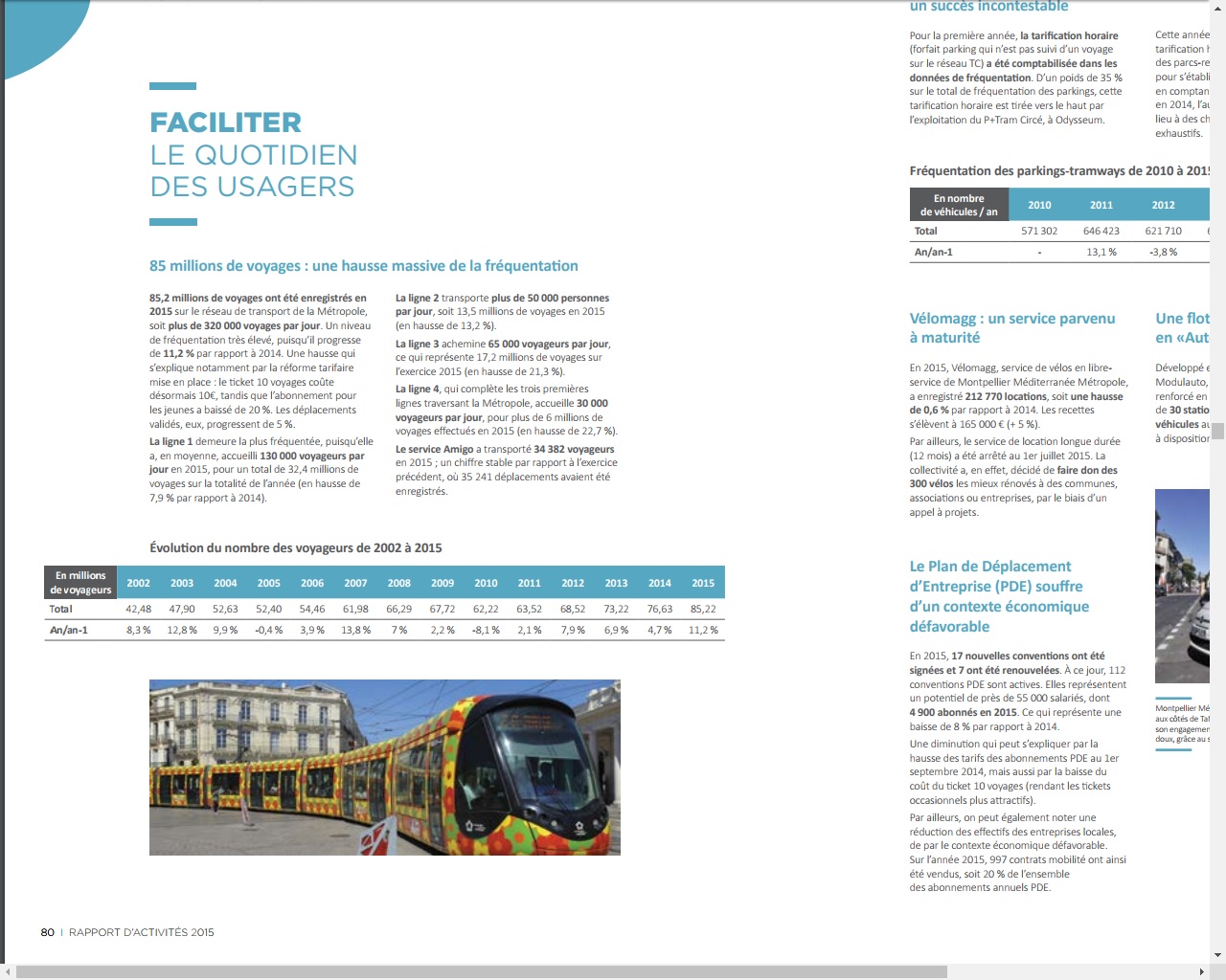 Capture d’écran de la page 80 du rapport d’activités de l’année 2015 concernant Montpellier Méditerranée Métropole (dimanche 19 novembre 2017)