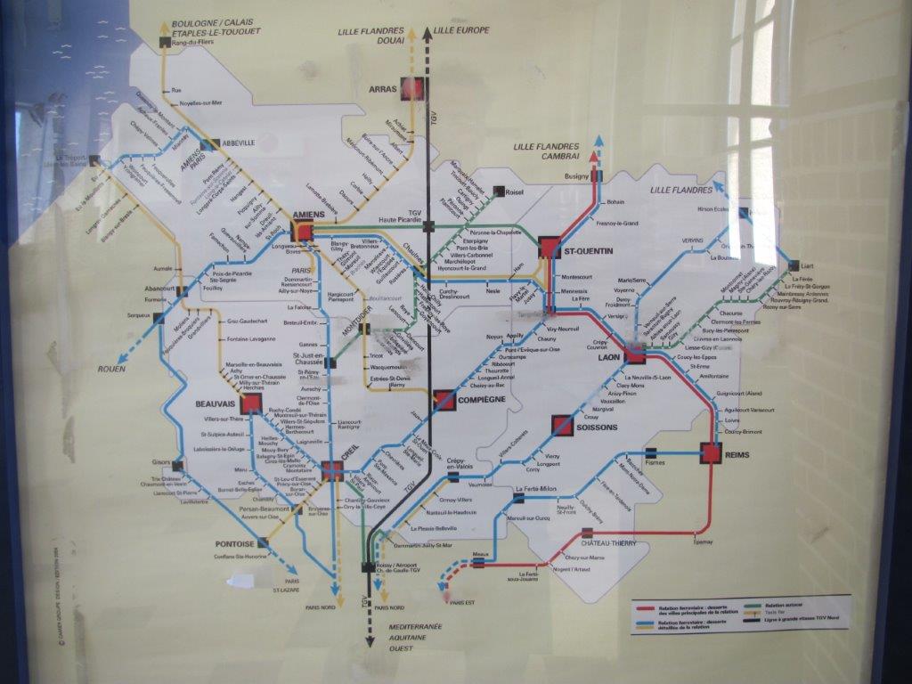 Plan du réseau TER de l’ex-région Picardie photographié en gare du Tréport – Mers les Bains, région Normandie, le samedi 19 août 2017. Copyright : Edouard Paris
