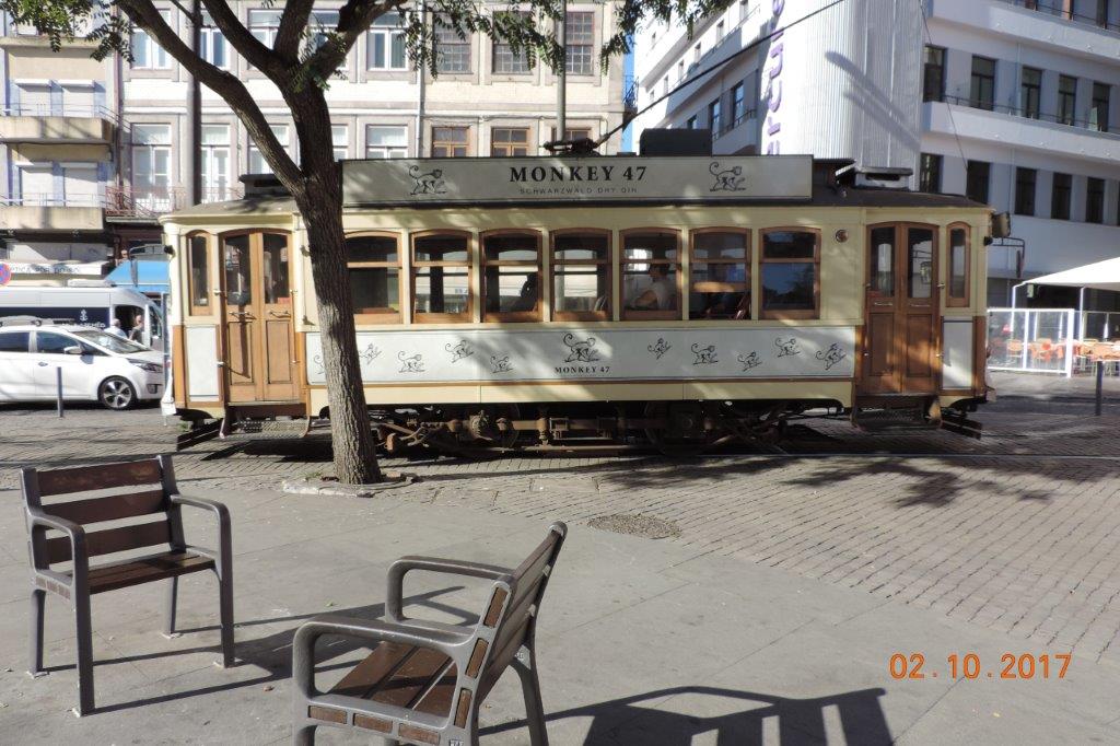 A Porto, la motrice historique 131 Brill 23, opérant sur la ligne 22 à vocation exclusivement touristique, est photographiée sur Praça da Batalha à deux pas de l’hôtel Mercure Porto Centro, le lundi 2 octobre 2017. Copyright : Fab