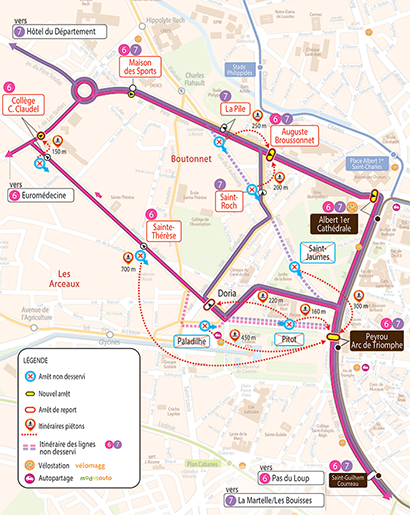 Itinéraires chamboulés des lignes 6 et 7 de bus urbains du 22 décembre 2017 au 31 janvier 2018. Document : TaM Montpellier 3M décembre 2017