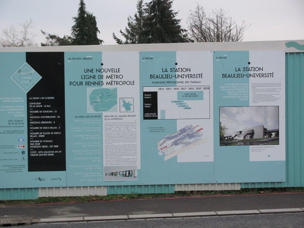 Panneaux d’information sur la future station aérienne « Beaulieu – Université » de la ligne b du métro de Rennes. Photo prise le lundi 25 décembre 2017. Copyright : Edouard Paris