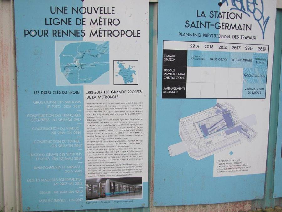 Panneaux d’information sur la ligne b du métro de Rennes et sur le calendrier de la construction de la station « Saint-Germain ». Photo prise le dimanche 24 décembre 2017. Copyright : Edouard Paris