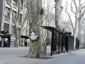 Hier, vendredi 19 janvier 2018, l’auteur de ces quelques lignes et photos s’est demandé si l’oeuvre d’art tout à fait insolite, qu’il venait d’immortaliser, quai 4b de la station « Albert 1er – Cathédrale », boulevard Henri IV, avait été réalisée dans le but de rompre la monotonie des lieux ou bien pour colmater de manière esthétique une ancienne plaie béante d’un platane centenaire.