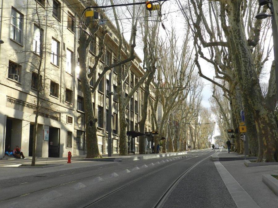 Boulevard Henri IV à Montpellier, la station « Albert 1er – Cathédrale » de la ligne 4 photographiée par un bel après-midi d’hiver, le vendredi 19 janvier 2018. Copyright : Anje34