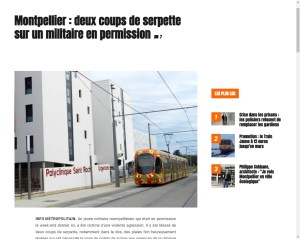 Ainsi, ce mardi 23 janvier 2018, un journaliste du média en ligne montpellierain e-metropolitain.fr a publié un article intitulé « Montpellier : deux coups de serpette sur un militaire en permission » en l’illustrant d’une photo empruntée, sans aucune permission, à la photothèque de tramwaydemontpellier.net.