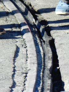 - La rupture de la bavette du rail à gorge, au demeurant en bien mauvais état, est une des conséquences du déraillement d’une motrice de la rame 2025 Citadis 401 Alstom, le mardi matin 30 janvier 2018. Copyright : Anje34