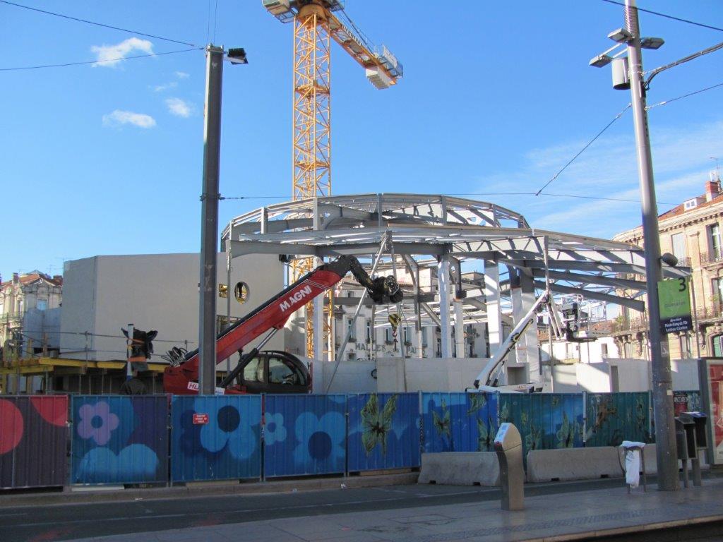 Vue sur le chantier des nouvelles halles Laissac à Montpellier, le samedi 3 février 2018. Copyright : Edouard Paris