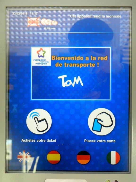 Le distributeur automatique de titres de transport TaM Montpellier 3M, installé dans le hall supérieur de la gare de Montpellier Saint-Roch, n’accepte pas le paiement par carte bancaire mais à la singularité de rendre la monnaie. Photo prise le vendredi 23 février 2018. Copyright : Anje34