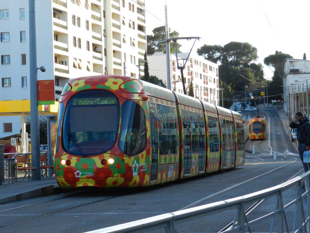 Retour à la normale sur la ligne 2 de tramway dans l’après-midi du vendredi 2 mars 2018. La rame 2062 Citadis 302 Alstom est photographiée à la station « Mas Drevon » vers 17h15 le même jour. Copyright : Anje34