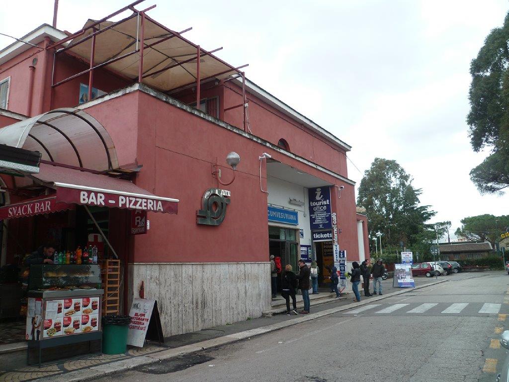 Photographie de la façade de la gare de Pompei Scavi Villa dei Misteri du réseau Circumvesuviana donnant sur la via Villa dei Misteri, le lundi 5 mars 2018. Copyright : Edouard Paris
