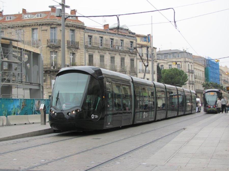 La journée du jeudi 22 mars 2018 sera-t-elle noire sur le réseau TaM Montpellier 3M ? La rame 2099 Citadis 402 Alstom multiligne est photographiée à la station « Observatoire », le samedi 24 février 2018. Copyright : Edouard Paris