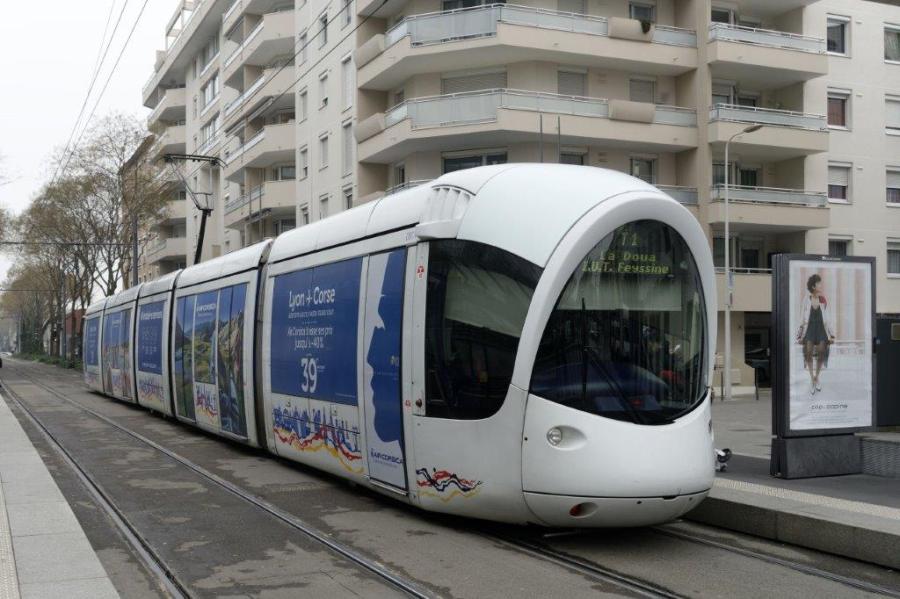 3 avril 2018 – De la publicité commerciale sur des rames du tramway lyonnais