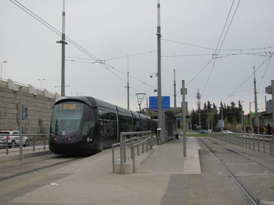 Le samedi 7 avril 2018, la rame 2098 Citadis 402 Alstom multiligne est photographiée au terminus « Mosson » de la ligne 1 mis en service le samedi 7 avril 2012. Copyright : Edouard Paris