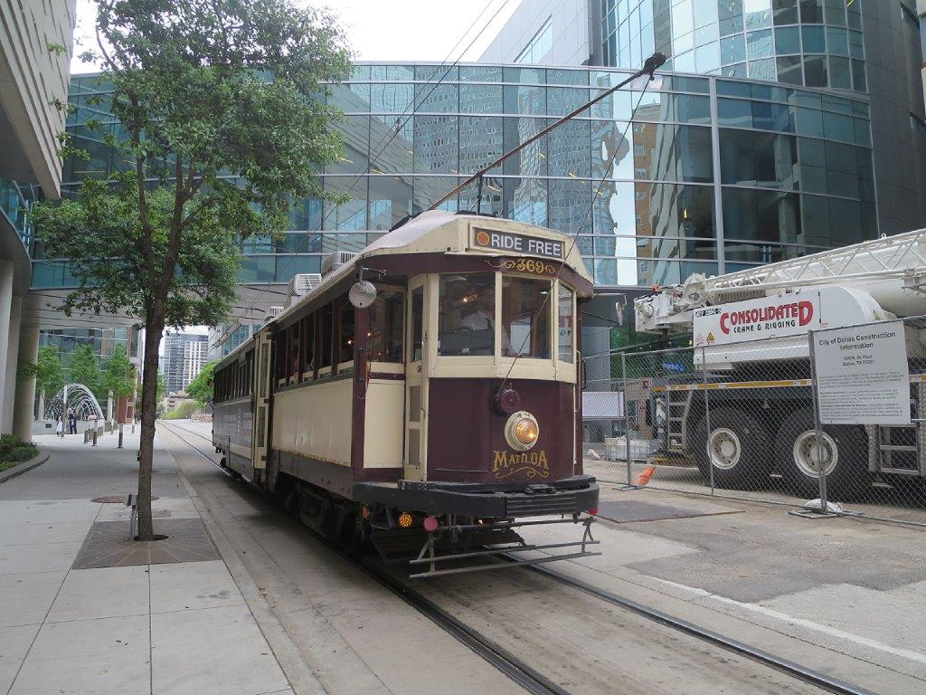 A Dallas, la motrice 369 « Matilda » d’origine australienne (année 1925) est photographiée à l’arrêt « St. Paul & Fédéral » sur la M-Line, le dimanche 1er avril 2018. Copyright : Karine D