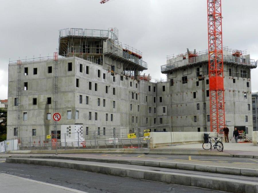 Aperçu des façades du complexe architectural en cours de construction « Hôtel St-Roch – Belaroia » donnant sur la rue Alexandra David-Néel, le vendredi 13 avril 2018. Copyright : Anje34