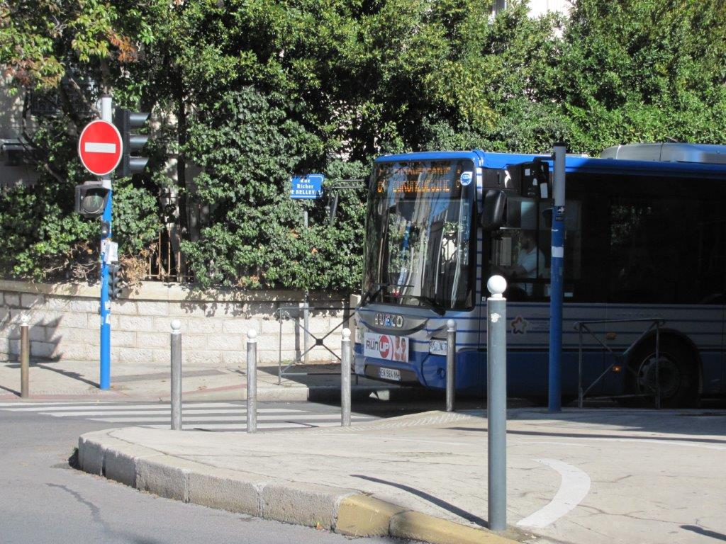 Un bus urbain de la ligne 6 est photographié au bout de l’étroite rue Richer-de-Belleval à Montpellier, le samedi 17 mars 2018. Copyright : Edouard Paris
