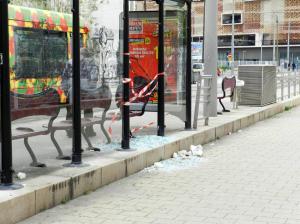 - Un échantillon du vandalisme au quotidien à Montpellier. Photo prise à la station « Rondelet » commune aux ligne 2 et 4 de tramway, le lundi 23 avril 2018. Copyright : Anje34