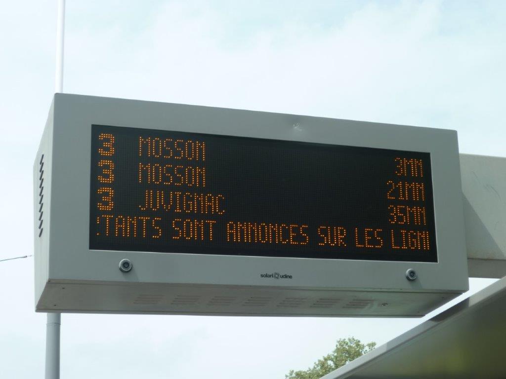 A 12h35, le samedi 28 avril 2018, le tableau électronique d’information de la station « Tonnelles » de la ligne 3, quai direction « Juvignac », annonçait d’importants retards. Copyright : Edouard Paris