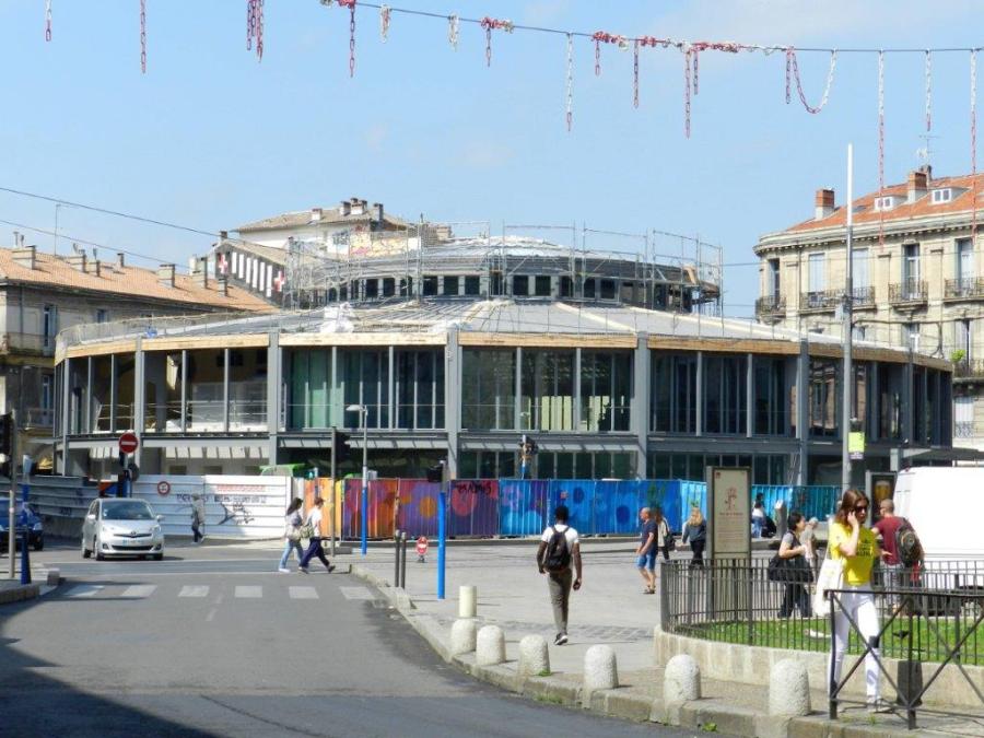 Place Alexandre-Laissac à Montpellier, des futures halles qui ressemblent à s’y méprendre à un carrousel. Photo prise le samedi 26 mai 2018. Copyright : Anje34