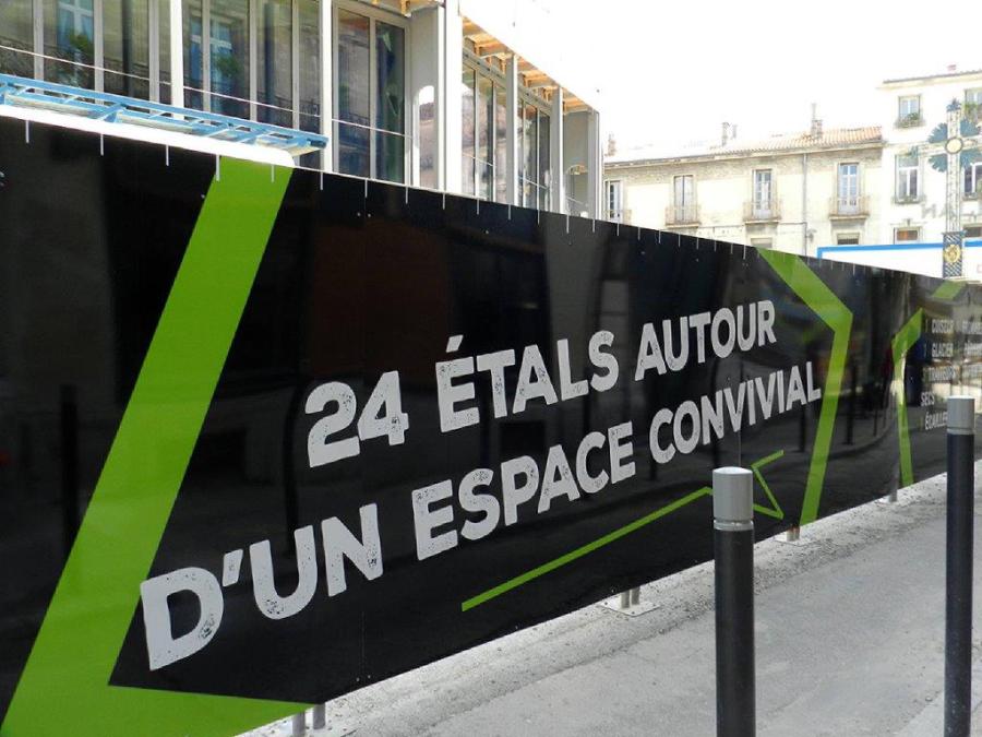 24 étals autour d’un espace convivial. Retenez bien le chiffre. Photo prise le mardi 29 mai 2018. Copyright : Anje34